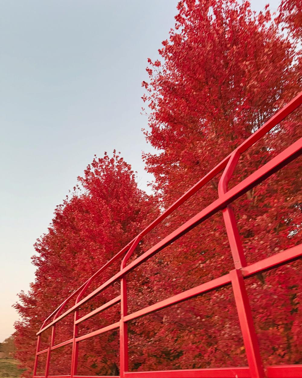 Michigan Autumn: Red Trees & Hay Ride