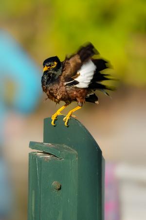 A mean Common Myna on Wailea Beach, Maui before flight shot on the Sonys Alpha 7iv with the 200-600mm F5.6-6.3 G OSS Super Telephoto lens.